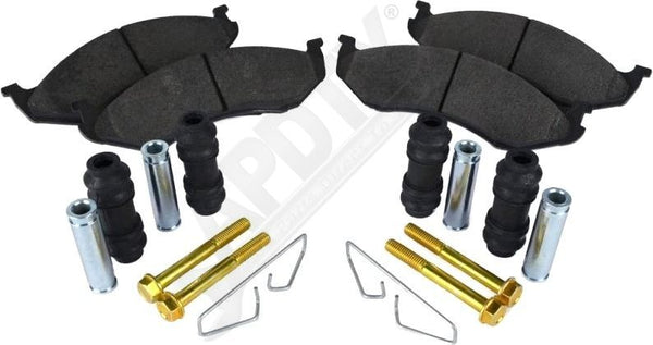 Includes Brake Pads, Caliper Bushings, Sleeves, Clips and Pins
